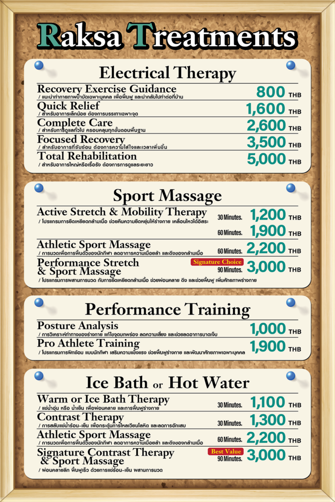 Raksa Physio เราไม่ได้แค่รักษาอาการเจ็บปวดให้ถูกจุด แต่เรายังเข้าใจการดำเนินชีวิตและกิจกรรมต่างๆของผู้บาดเจ็บ ดังนั้นเรายังมีการแนะนำการทำกายภาพ เทคนิคเฉพาะทาง ต้นคอ หลัง เข่า ออฟฟิศซินโดรม อีกด้วย